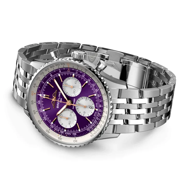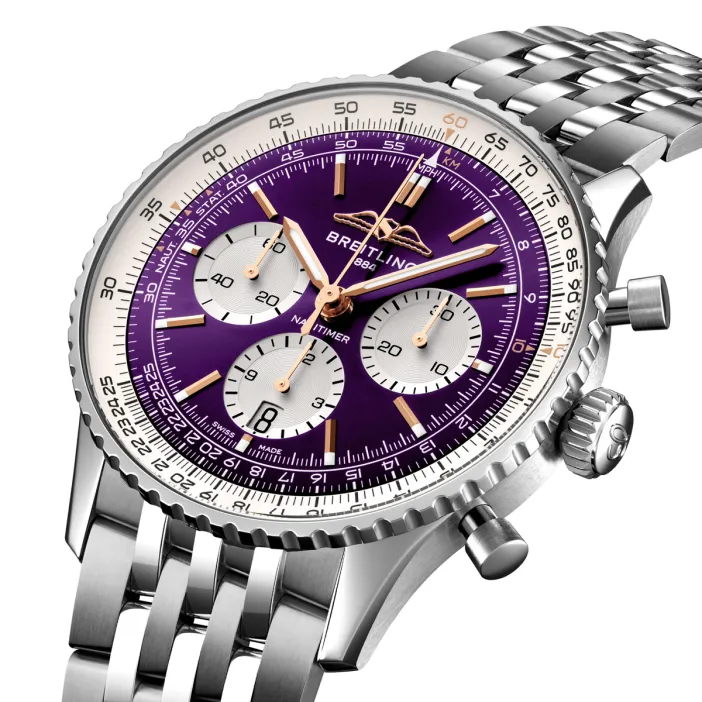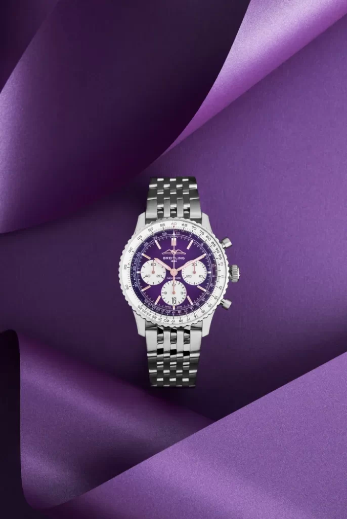 Limited to just 50 pieces, this special release not only commemorates UK top replica Breitling and Cortina Watch’s long-standing partnership but also highlights the importance of a thriving and robust e-commerce market. With its bold purple satiné translucide dial, this unique Navitimer brings a fresh, contemporary aesthetic to Breitling’s heritage design.